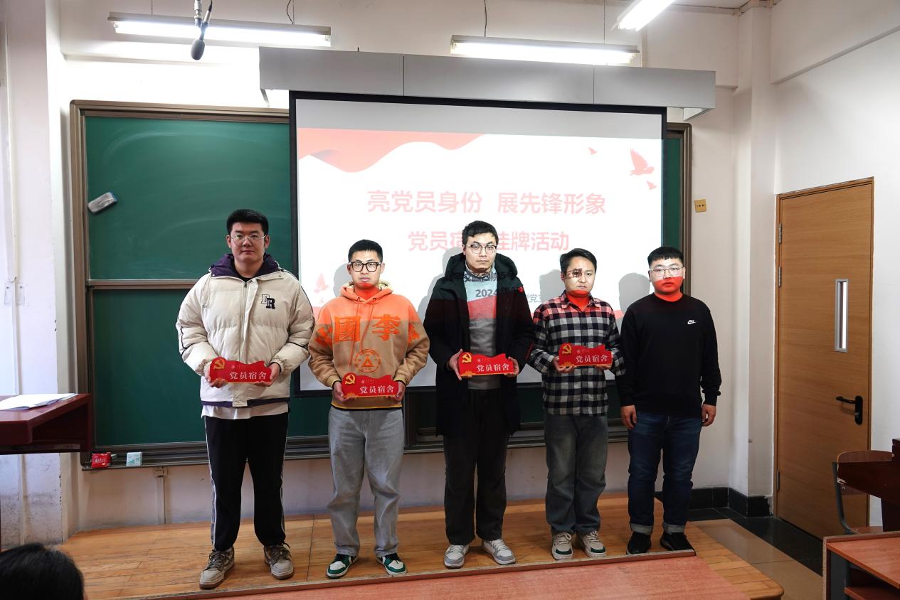 党支部书记段鹏飞强调党员宿舍挂牌活动旨在教育引导学生党员铭记党员身份,增强担当意识,强化责任感和使命感,以典型带全体,全面提升“一站式”学生社区育人实效。