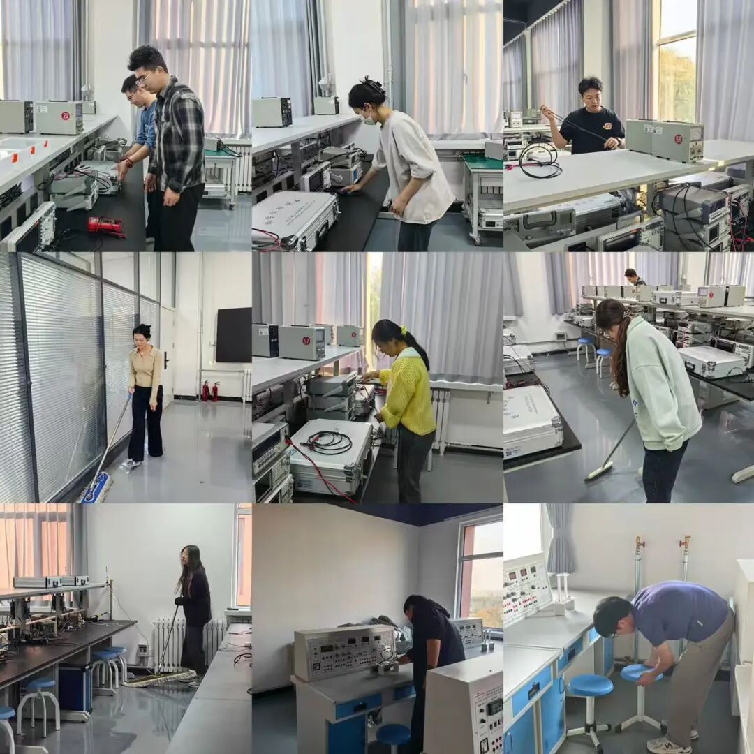 大家一边清洁,一边交流实验安全知识,现场氛围热烈而有序。经过1个多小时的辛勤付出,原本略显杂乱的实验室焕然一新:仪器设备摆放整齐划一,操作台干净整洁,为同学们营造了更加舒心的实验环境。