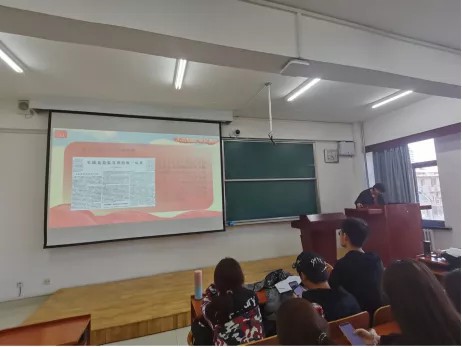 2019级自动化二班团支部的韩金庭同学为大家讲述了党史故事,带领大家回顾了新中国艰苦的奋斗历程;孙浩同学向老师同学们详细描述了自己家乡河北张家口在党的带领下所发生的翻天覆地的变化;张新宇同学讲述了家乡包头市始终不忘初心跟党走,逐渐从一个不知名的小城市成长为现在的内蒙古第一大工业城市的历程。