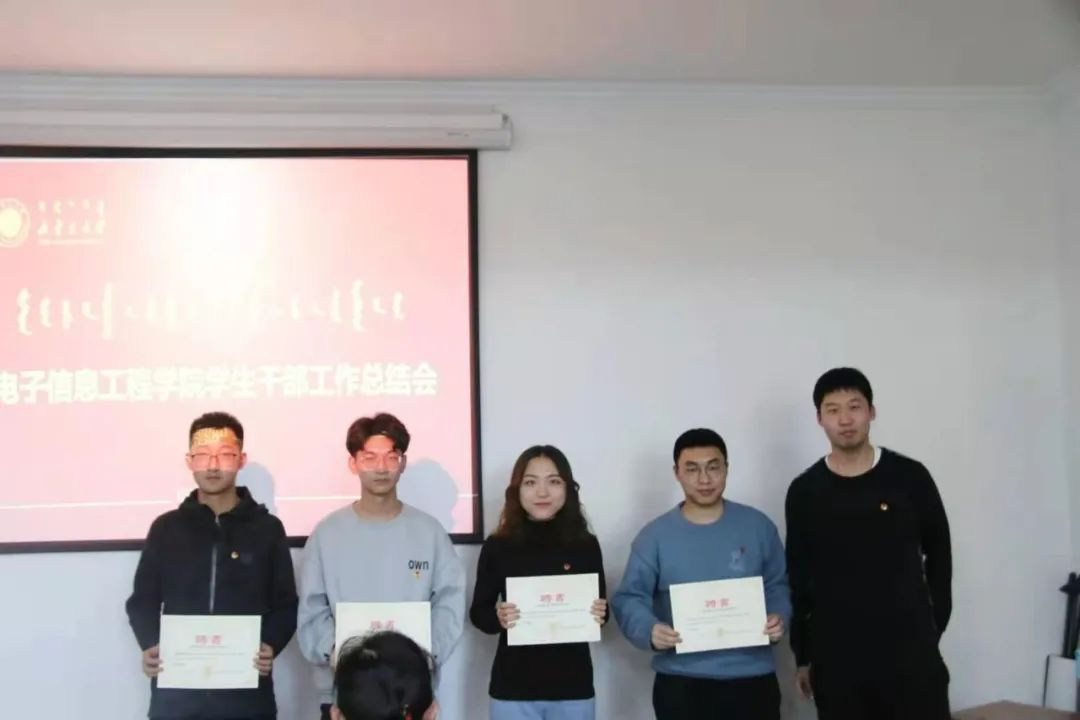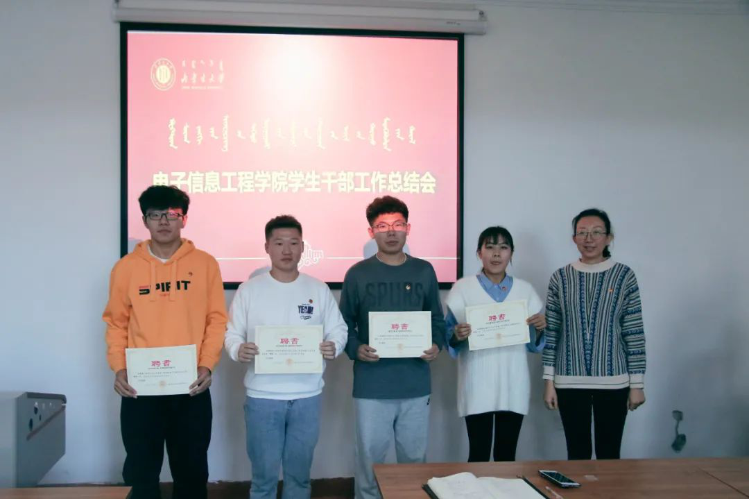 最后由吴岩老师、白云波老师为学生会主席团成员阿力坦胡亚嘎、塔拉、文彬,团总支兼职副书记董红丽,团总支助理张艺康、张泽、郑志茹、田雅思、太平颁发了聘书。