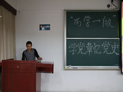 团日活动围绕学习“党章党史”展开。首先,团支部书记翼萌萌介绍了党的发展历程,带领支部全体团员学习了《党章》的总纲、党章的基本内容和党的组织体系。之后,白锦文同学介绍了“两学一做”的具体含义、开展的背景、学习教育的目的和教育对象,并组织大家观看了有关“两学一做”的新闻视频。