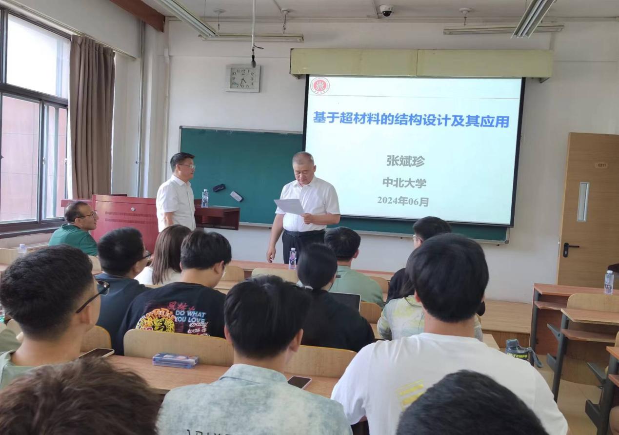 5月31日,中北大学仪器与电子学院张斌珍教授受邀为太阳成集团tyc7111做题为“基于超材料的结构设计及其应用”的学术讲座。太阳成集团tyc7111院长王树彬教授主持学术讲座,全院30余名师生现场参加学术讲座。