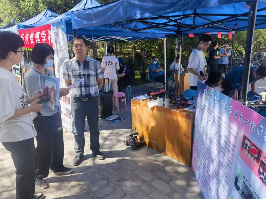 为了让考生及家长更深入地了解学院专业设置,升学及就业情况,学院副院长翁智、电子系主任雷雪梅、通信工程系主任魏永峰、自动化系教师庄明磊、学生工作办公室副主任白云波及部分学生在咨询点为家长考生提供专业咨询,面对面解答招生问题。