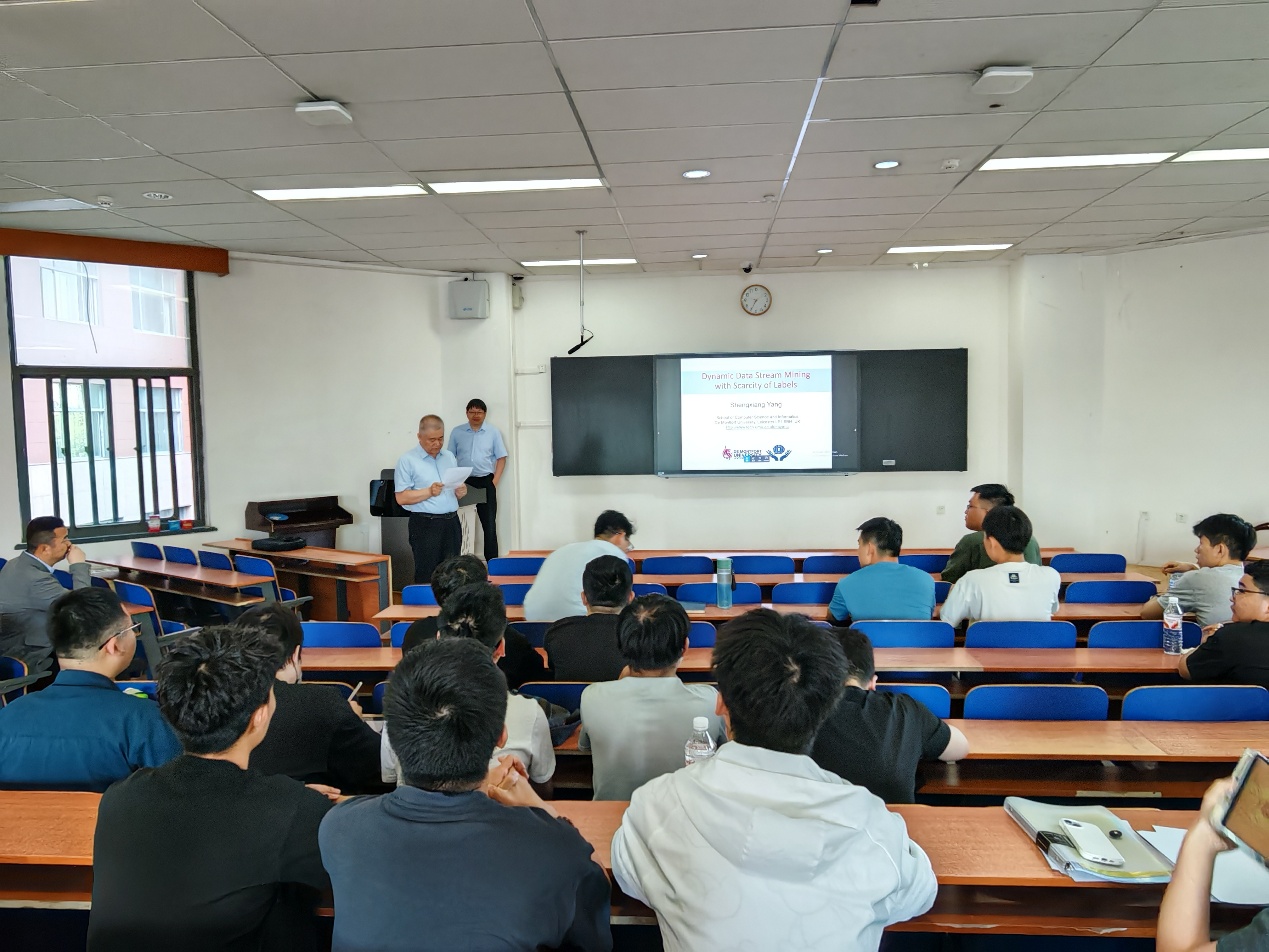 报告会上,Shengxiang Yang教授围绕数据流挖掘分享了其团队最新的研究工作,首先,介绍了一种基于蚁群算法的数据流聚类方法,然后,针对稀缺标签数据流分类问题,详细阐述了一种基于聚类和单类分类集成学习的新型框架,最后,给出了大量的实验结果,证实了算法的有效性。