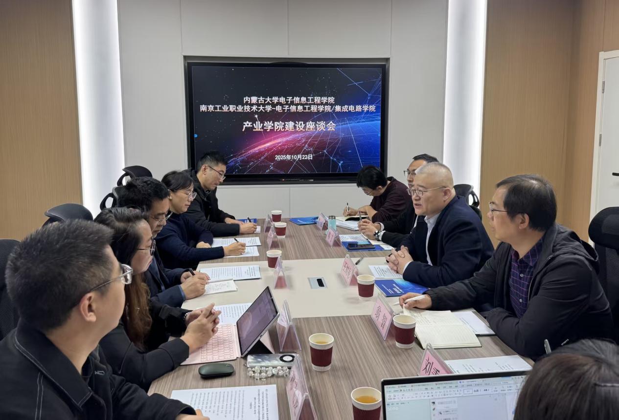 2025年10月22日,南京工业职业技术大学太阳成集团tyc7111/集成电路学院领导莅临我院,围绕现代产业学院的建设开展调研交流参观活动。自治区级智能制造现代产业学院共建单位北京匠成教育科技有限公司相关负责人、我院院长王树彬、副院长翁智、副院长韩丁、电子信息科学与技术系系主任雷雪梅、通信工程系系主任魏永峰、教务科研办主任刘秉琦、实验室管理中心副主任阿音呼等参与座谈交流活动。