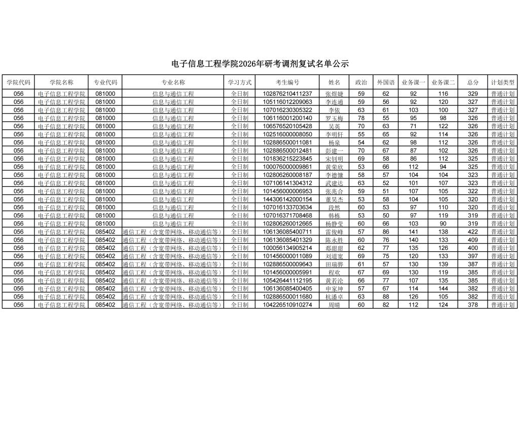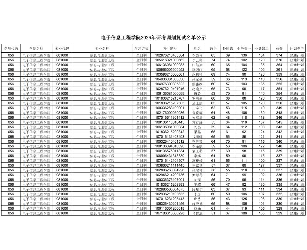 太阳成集团tyc71112026年研考调剂复试名单公示