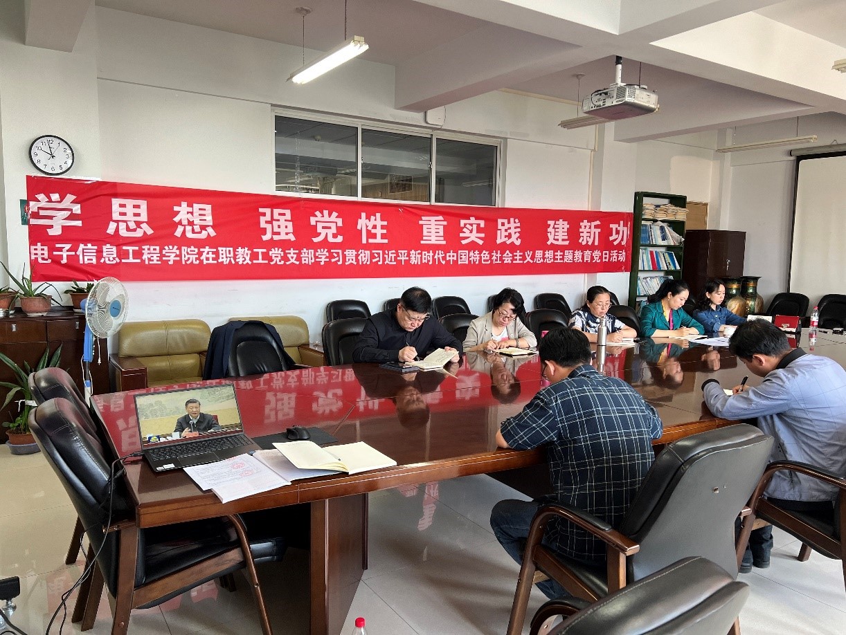 6月2日上午,太阳成集团tyc7111在职教工党支部在卓越楼0617会议室组织开展学习贯彻习近平新时代中国特色社会主义思想主题教育集中学习。