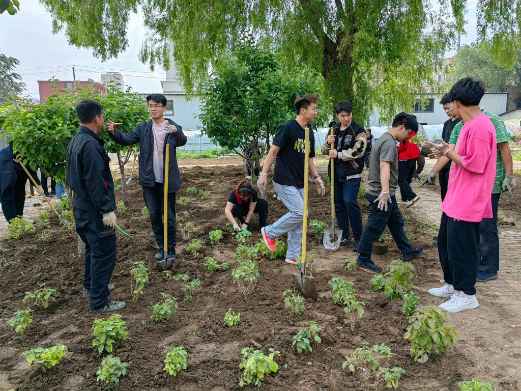 在此次劳动教育实践课中,男同学用铁锹挖坑,女同学负责放花埋土,不仅美化了校园环境,还增强了同学的吃苦耐劳的精神,展现了新时代青年不怕累、不怕苦的青春风采,以最朴实的行动弘扬朝气蓬勃、健康向上的精神风貌!