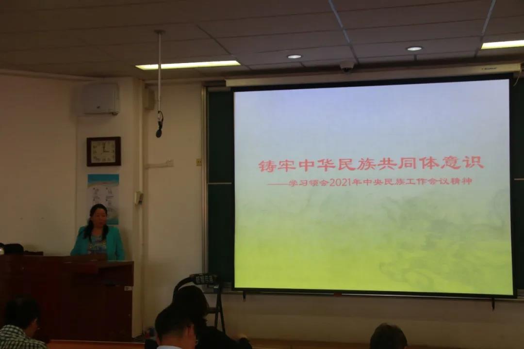 2021年9月30日下午15:00,太阳成集团tyc7111在综合楼阶梯教室三举办党史学习教育专题学习班,邀请我校马克思主义学院赵丽华副教授作题为《铸牢中华民族共同体意识——学习领会2021年中央民族工作会议精神》的讲座。本次专题学习由太阳成集团tyc7111党委书记李宏宇主持,学院全体党员参加。
