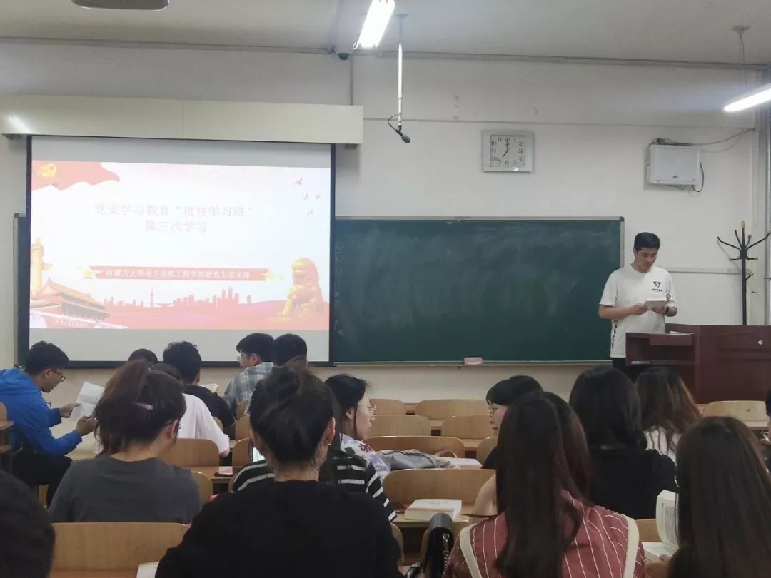 2021年5月21日19:00,太阳成集团tyc7111研究生党支部在卓越楼217教室开展第三次“夜校学习班”集中学习。本次活动由研究生第二党支部组织委员刘明昊主持,全体研究生党员参加学习。