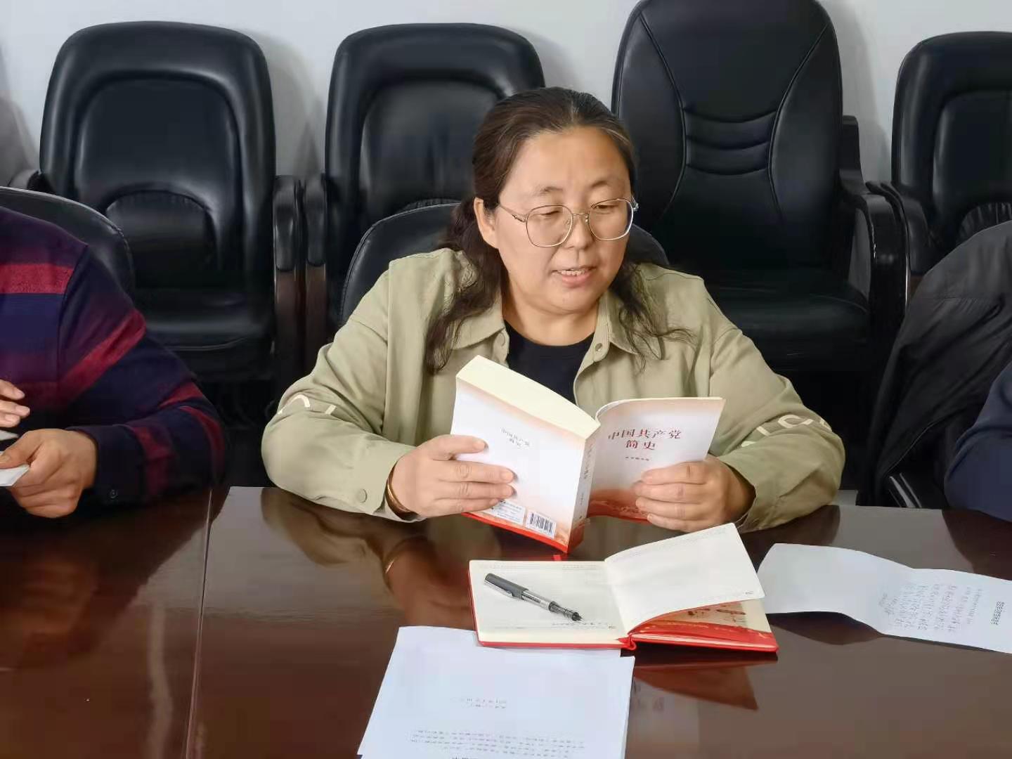 会上,雷雪梅书记为全体在职教工党员发放了学习材料——《中国共产党简史》并对读书班的开展作出具体安排。随后,与会在职教工党员依次朗读《中国共产党简史》中第一章“中国共产党的创建和投身大革命的洪流”的内容,大家共同学习并进行了深入研讨。