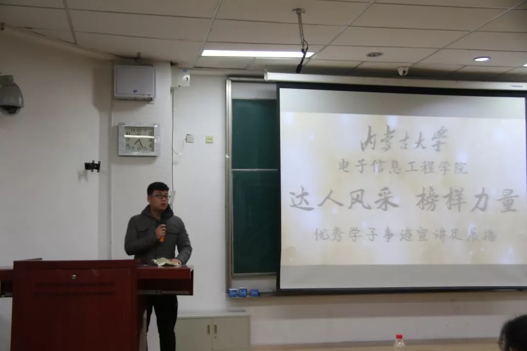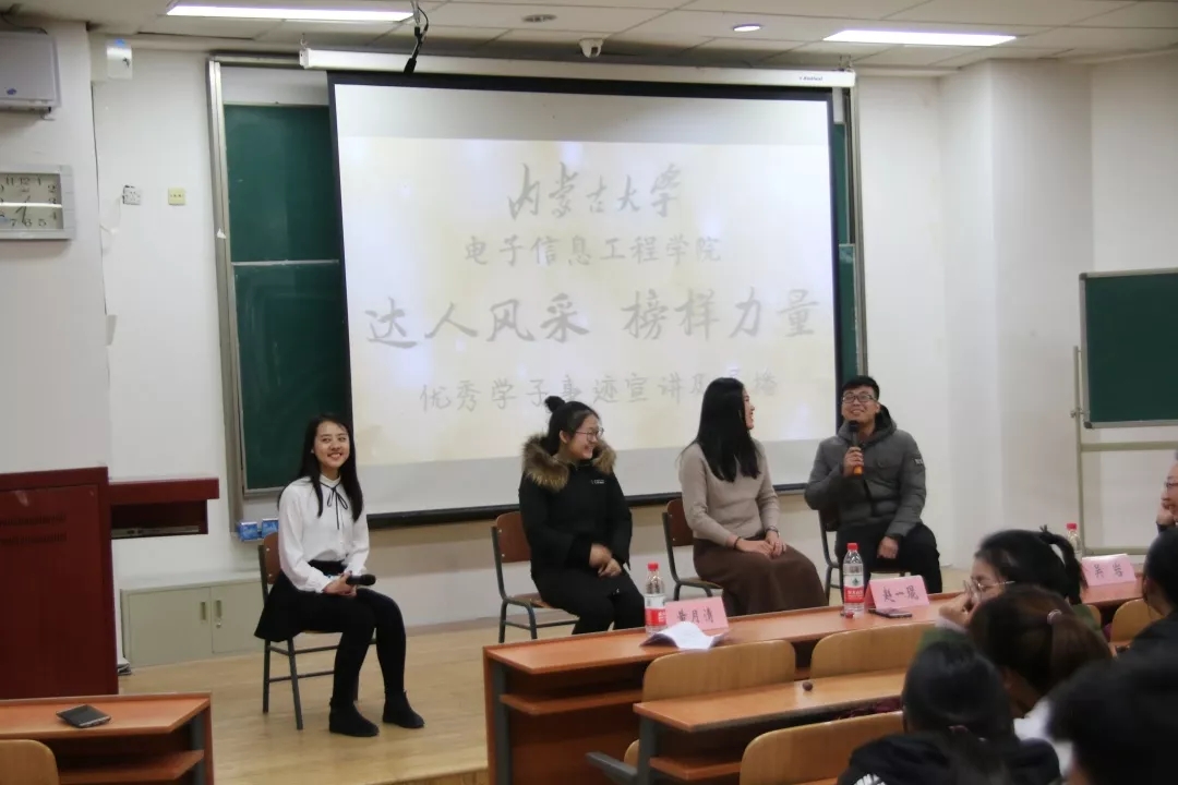2018年12月4日晚上7点,太阳成集团tyc7111于综合楼2楼阶梯教室举办了“达人风采,榜样力量”优秀学子事迹宣讲会。太阳成集团tyc7111专职辅导员吴岩老师出席本次宣讲会,全体2018级新生聆听此次宣讲会。担任主讲的有2015级电子信息科学与技术专业的黄月清学姐,2015级自动化专业的赵宏明学长,2015级通信工程专业的赵一琨学姐。