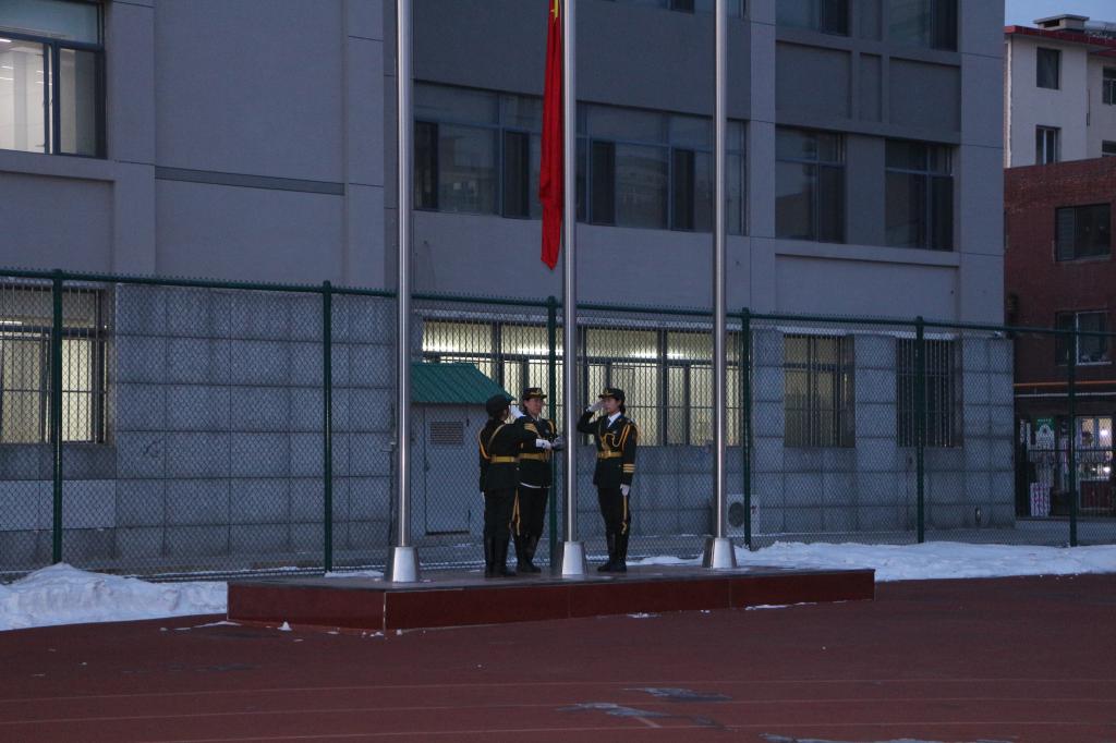 七点整,国旗护卫队的队员们迈着坚定有力的步伐走向国旗,当国旗飞舞在空中时,铿锵激昂的《义勇军进行曲》响彻操场。同学们怀着对美好未来的憧憬,以饱满的精神状态迎接新学期的到来!