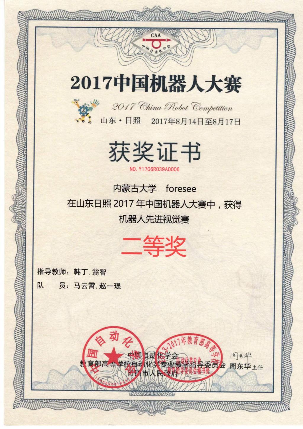 获奖证书