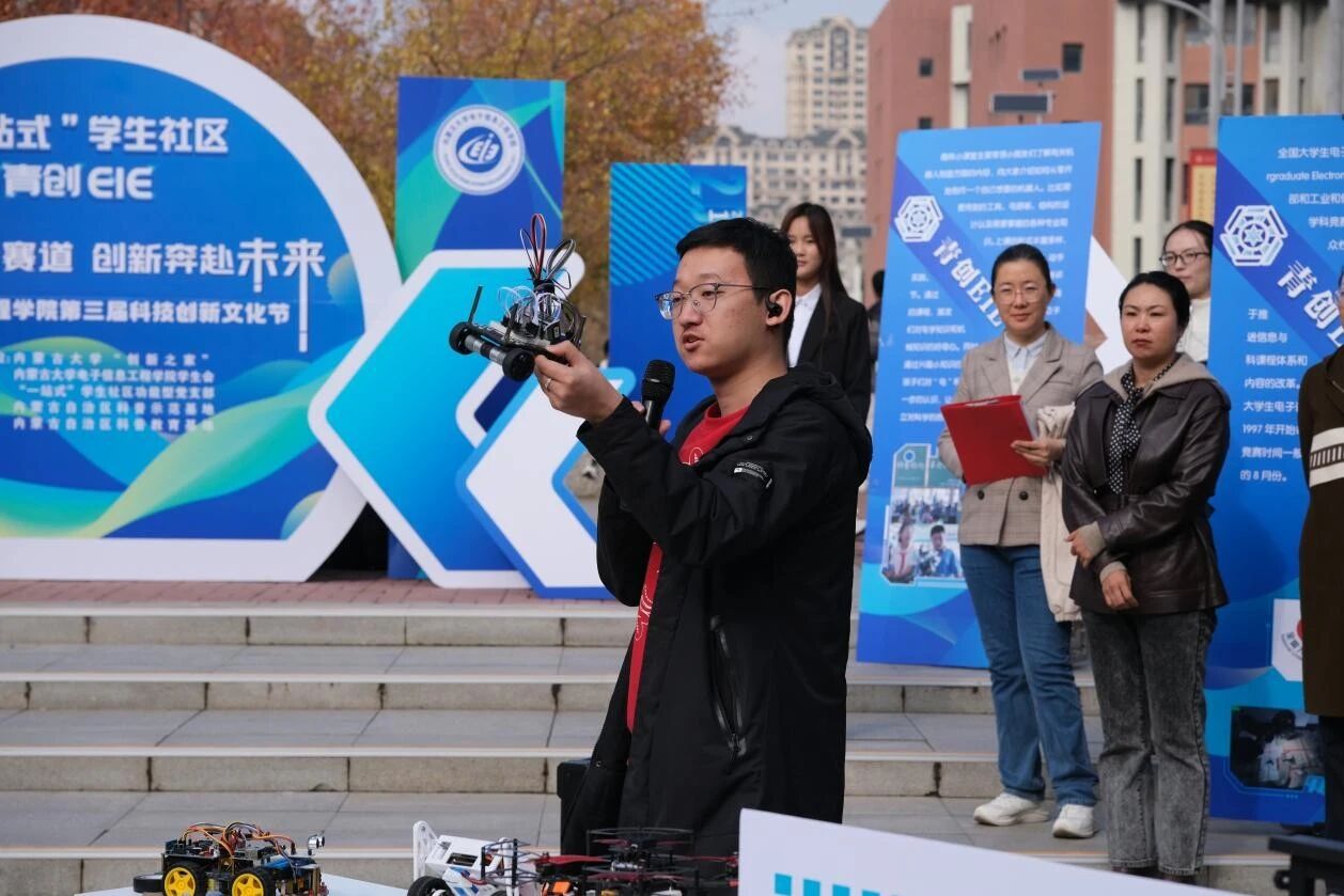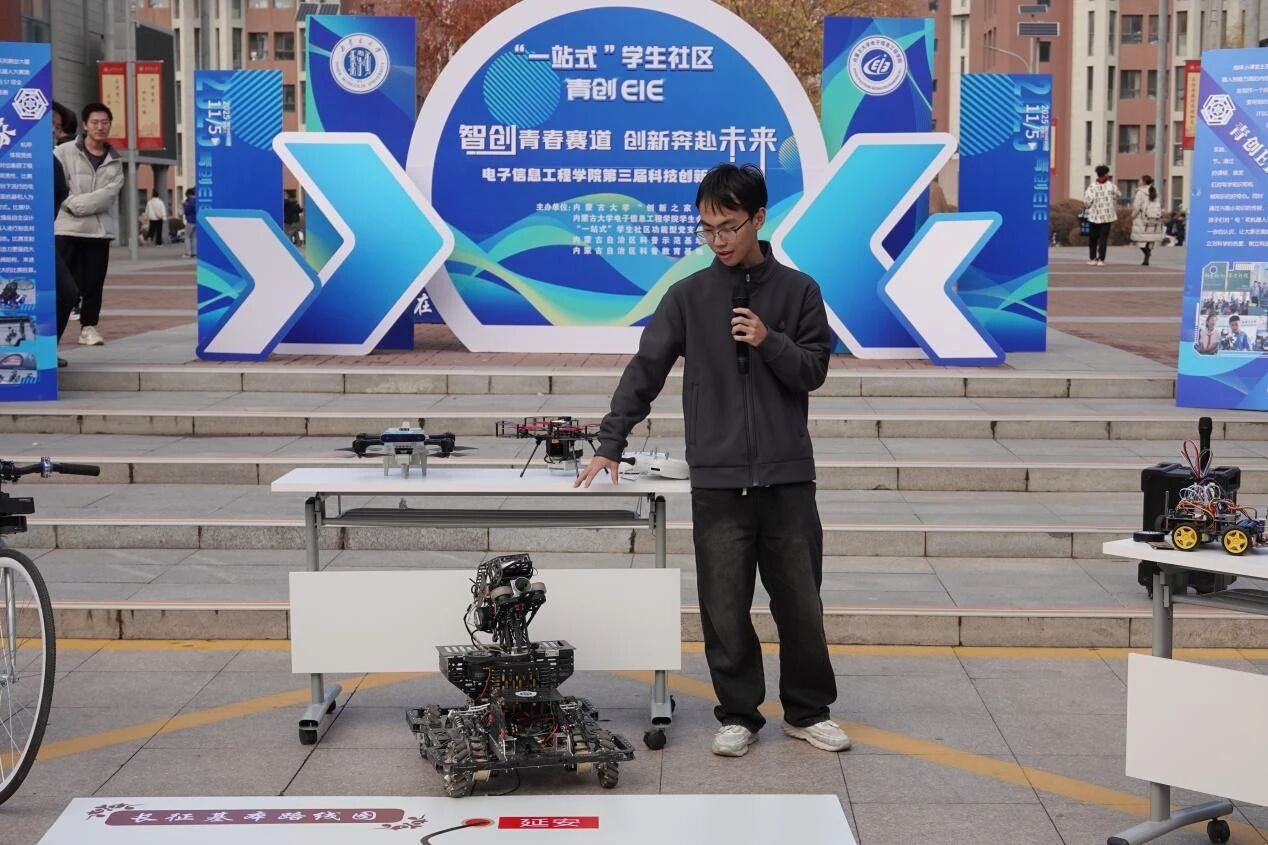 活动现场,同学们带来了多项融合创意与技术的实物作品,从灵活机敏的机器狗,到翱翔天空的无人机,再到智慧前行的智能车,每一个项目都凝聚着学子们的智慧与汗水,展现了太阳成集团tyc7111的创新实力与青春活力。