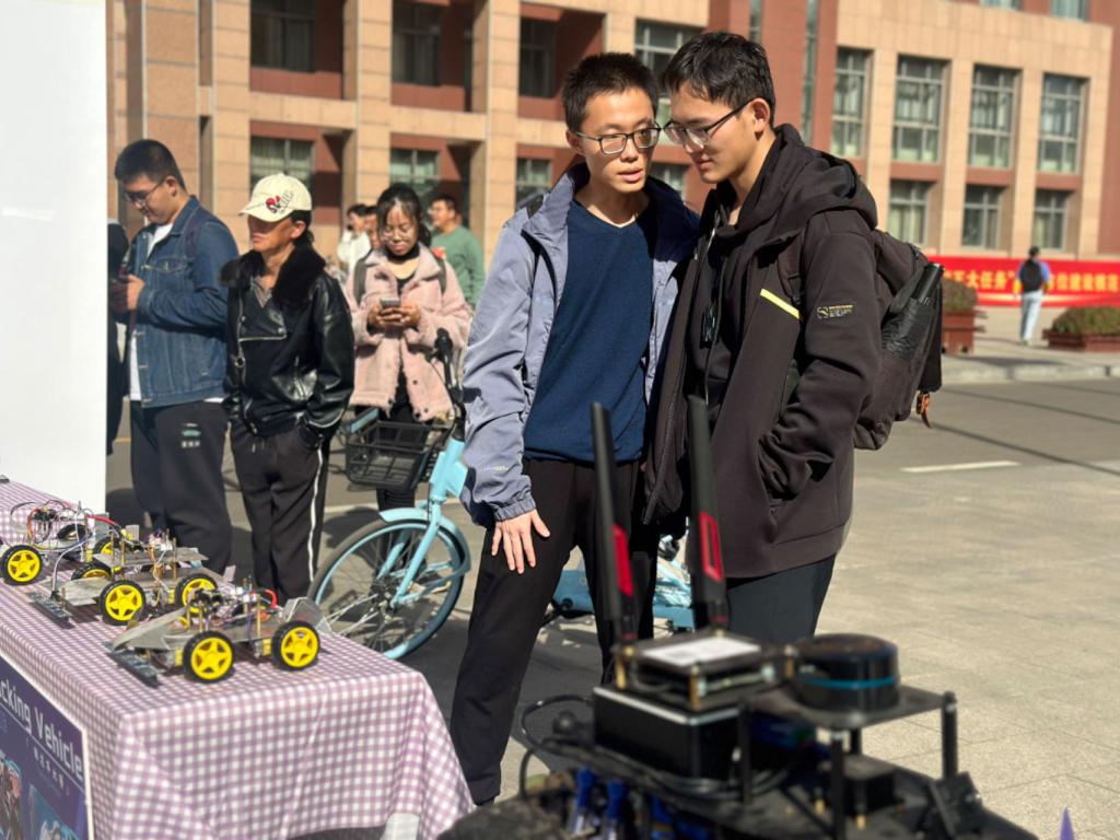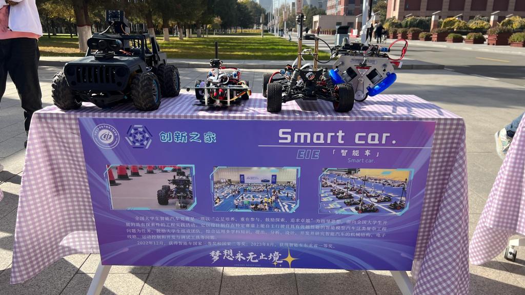 创新之家成员们将团队各类作品带到现场供大家参观,并现场为观众展示操作智能车、无人机、机器人等,不仅使同学们产生了浓厚的兴趣,更使路过启动仪式的行人们纷纷为其驻足。