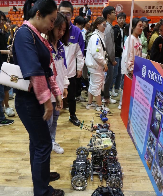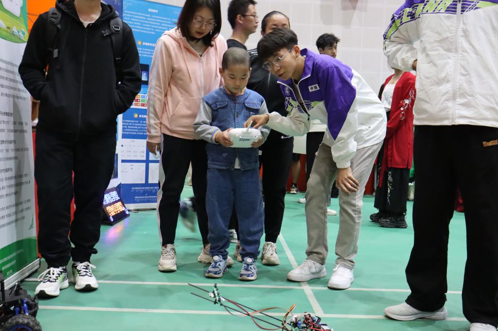 特色游园活动中,我院设立“青创EIE·创新之家”特色展台,展出各种各样的电子模型和机器车,同学们可以近距离观察它们,甚至可以用遥控器来操纵它们。