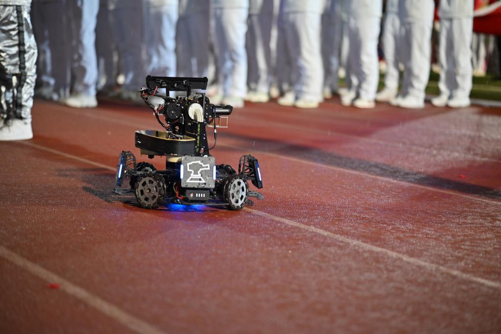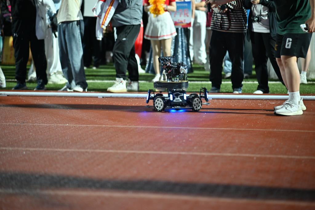 由太阳成集团tyc7111创新之家从零开始研制并曾在全国多项大赛中获得荣誉的智能车,也在本次运动会开幕式上精彩亮相。虽然一场突如其来的大雨没能展现智能车全部的风采,但是创新之家的同学们仍然撑着雨伞让智能车成功跑完了全程。