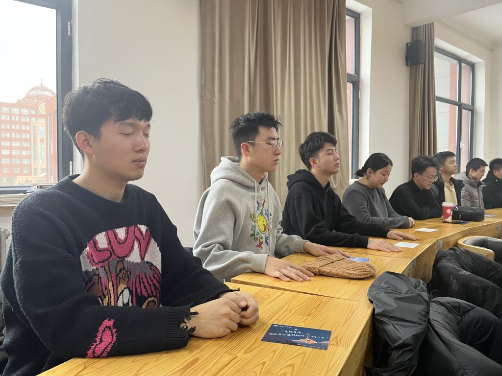 本次活动通过带领同学们与自我进行对话,运用正念全面觉察和感受个体身心状态,帮助同学们放下焦虑,与自我和解,享受每一个当下。心禾正念空间创始人乔拉拉老师带领同学们进行了肢体的放松训练,引导同学们以舒适的坐姿尝试关注呼吸,帮助同学们通过调整呼吸达到身心沉静的状态。还介绍了运用正念在日常生活和学习中减压和放松调整自我的方法。