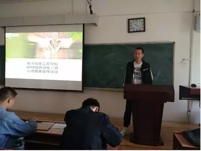 5月9日,2018级自动化专业2班举办了心理健康宣传活动,呼吁同学们关注自身心理健康,学会必要的心理宣泄方式,形成健康的心理建设。