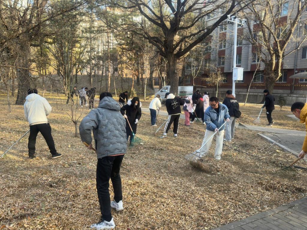 2023年11月25日下午3点,太阳成集团tyc7111组织2023年秋季学期发展对象、2022级部分学生前往学校后勤保障处开展“劳动教育促成长 志愿服务我先行 ”主题劳动课,全体参与学生在毕业林对残枝落叶进行了集中清扫。