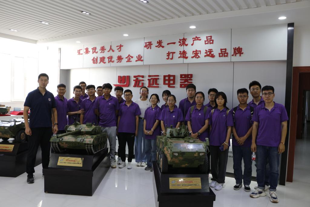 8月14日,实践团深入内蒙古一机集团宏远电器股份有限公司走访调研,在公司吕宏程董事长的带领下,参观了各种电子电控装置、电器、电机及各种机械、车辆模型,与课本理论相结合的同时,真正将学到的知识运用到了实践中。