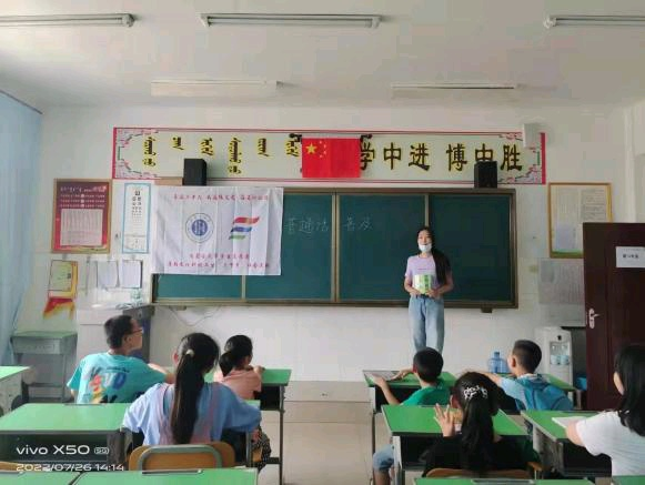 7月17日,团队进行了为期一周的线上线下问卷调研,覆盖内蒙古自治区三个盟市八个少数民族聚集地区共1000人次。结合社会环境、调查结果,团队在调研地区开展普通话宣传教育活动,在青少年以及学前儿童中推广普及国家通用语言。此次活动获得了当地政府和家长的一致好评。