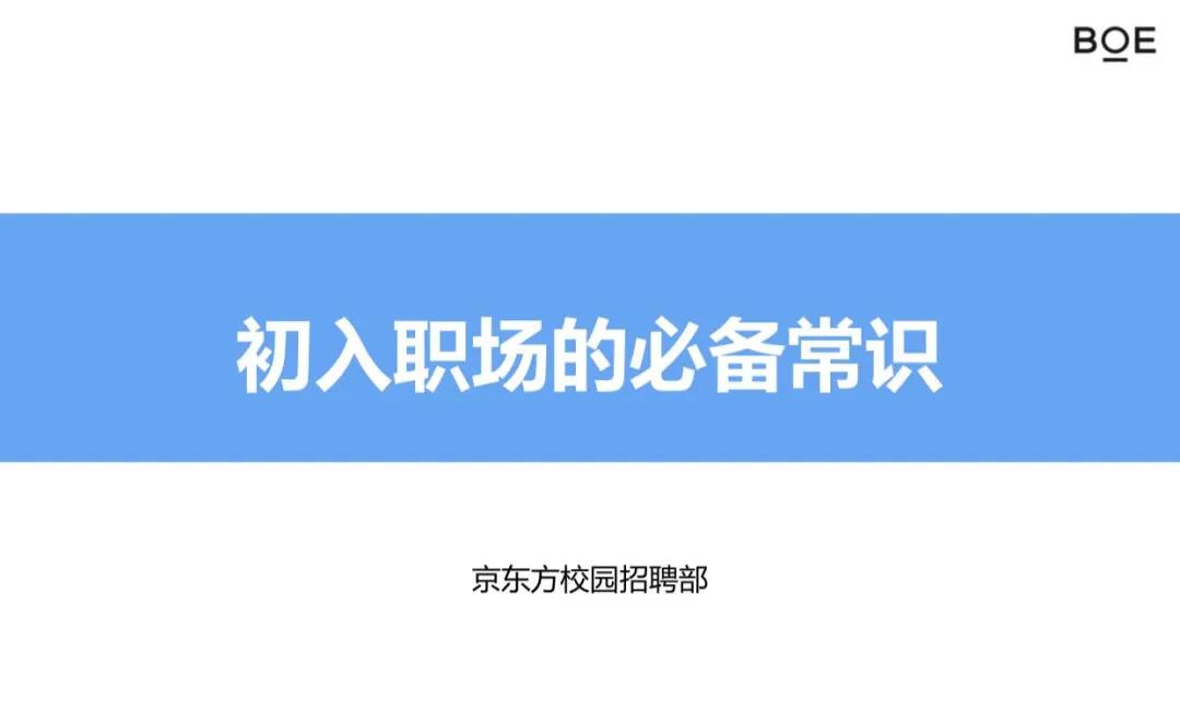 荆爽,2018年毕业于伦敦大学皇家霍洛威学院项目管理专业,2018年底加入京东方科技集团校园招聘部,主要负责项目有内部推荐,Open Day活动等,擅长求职就业相关课程指导培训。她为同学们详细讲解了职场基本法律法规、工资福利待遇等必备常识,对于从校园人到职场人的角色转变与适应进行了全面的指导。