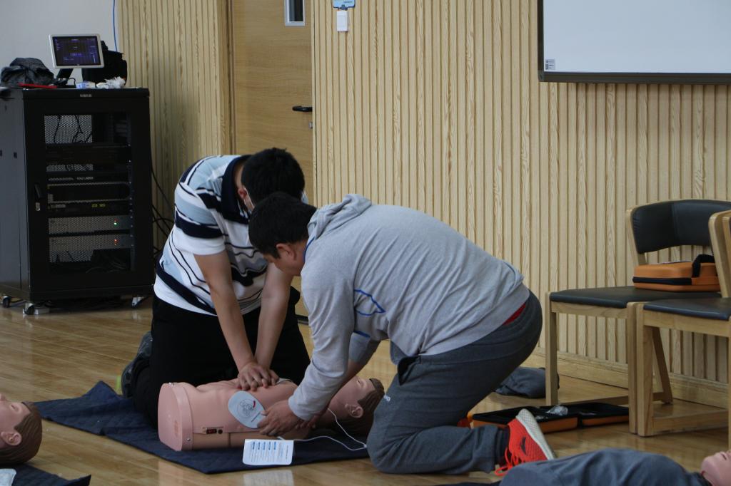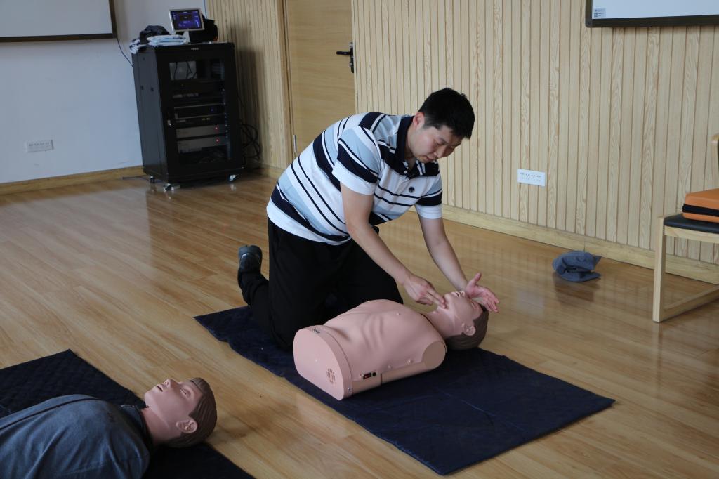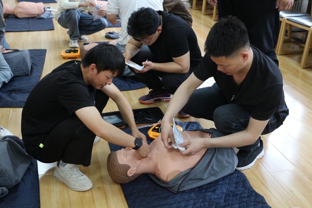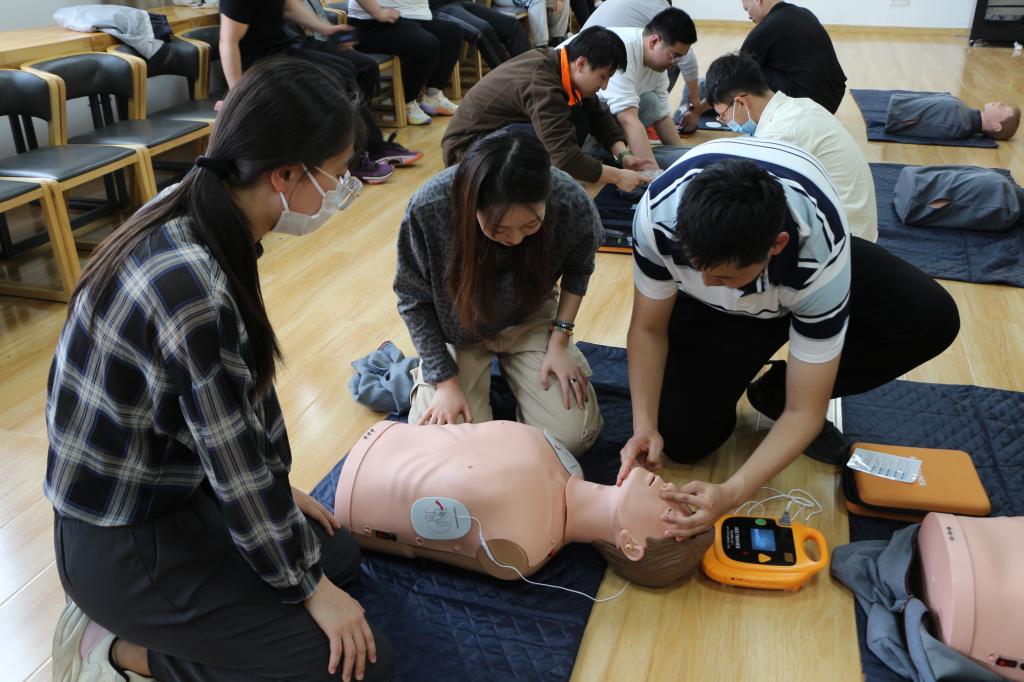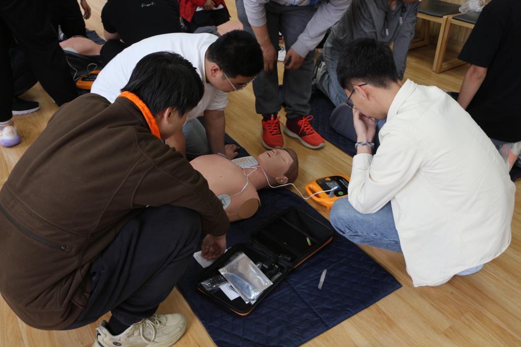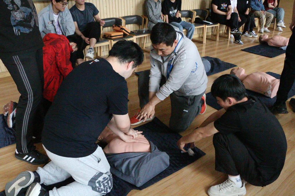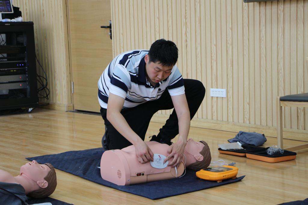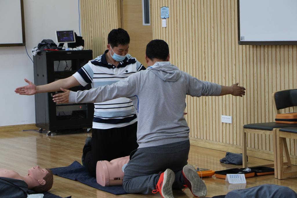 本次培训由太阳成集团tyc7111白云波老师、保卫处阿斯罕老师做指导,采取理论讲授和实操练习相结合的方式进行,实操过程包含心肺复苏操作、自动体外除颤仪(AED)的使用。